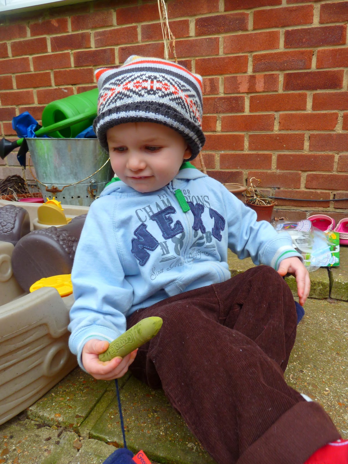 When we finished with the chalking, we went on to do a little digging. The ground is still too hard for that kind of nonsense but Jensen was keen to have a poke around.