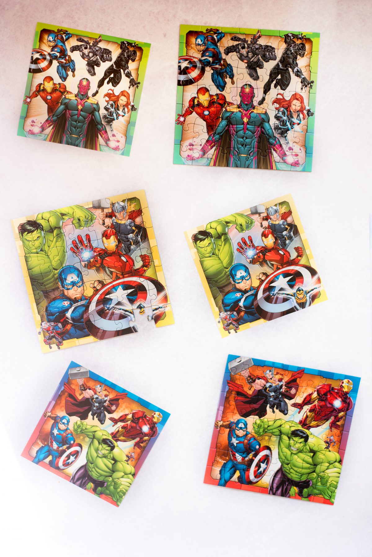 So, three jigsaws, three boys and I helped with each of them since they were quite tricky – but they were very proud of the end results! Everyone had a favourite Avenger in each jigsaw. If you’re worried about sorting the pieces out, that DID take some time, and I ended doing that part, but there’s a little sheet of each jigsaw in the pack to guide you in putting them together which makes it much easier after the initial sorting out!