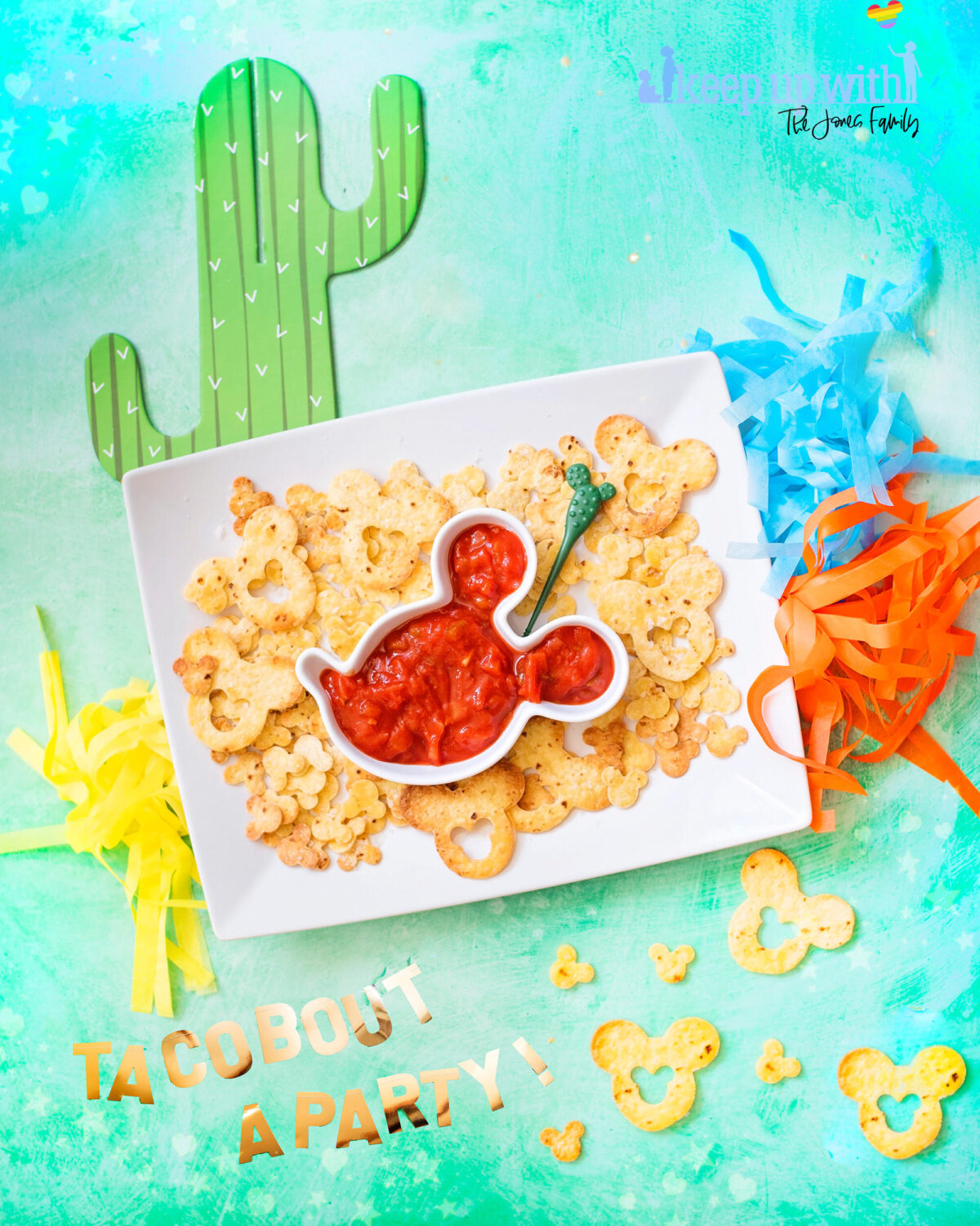 Hey, friends! Today I spent the day cutting out Mickey Mouse shaped tortilla chips ready for the boys to come home from school…and I’m so glad I did, because now they have a new favourite snack – Mickey Mouse Chips ‘n’ Dip! Now, NONE of my boys will eat a tomato if offered, and all will tell you how awful they are….yet those same three boys will sit and eat a bowl of nachos with salsa and not bat an eyelid. I live in fear of them discovering that there are real live vegetables in that there salsa dip, but at the moment they’re eating in blissful ignorance.