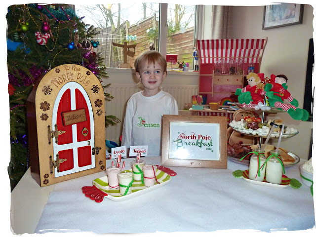 As everything fell behind (best laid plans and all), our North Pole Breakfast ended up being on Boxing Day.  I had it all planned beforehand, but of course it being after Christmas Day, there wasn’t an inch of room in our house and it was like a (beautiful, colourful) war zone.  It was a mess.  I literally put the tables in the middle of everything and set up.