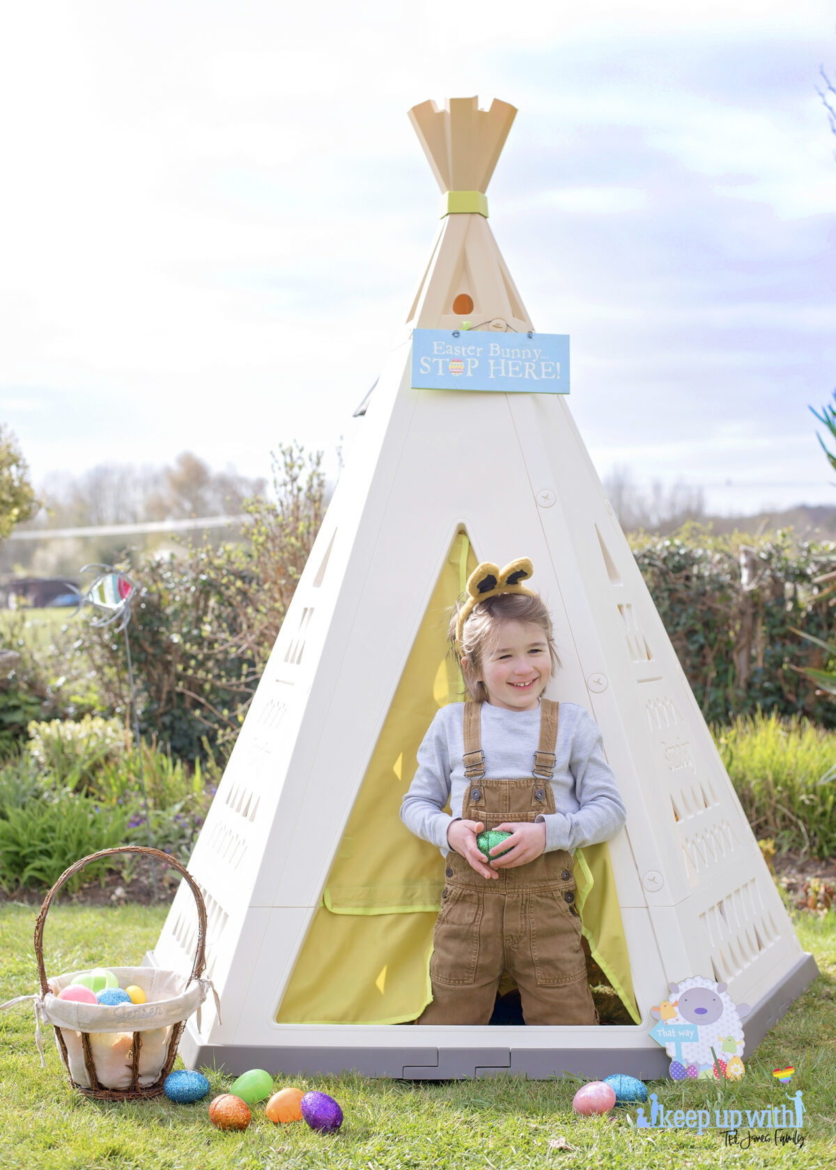 This week we had a visit from the Easter Bunny…and this time he bought a gigantic teepee with him and left it in the garden. It served as base for the Easter Hunt and became to site where many chocolate eggs and sweets were eaten. The boys were over the moon – the Easter Bunny may have had a little help from Smoby this year, you see.