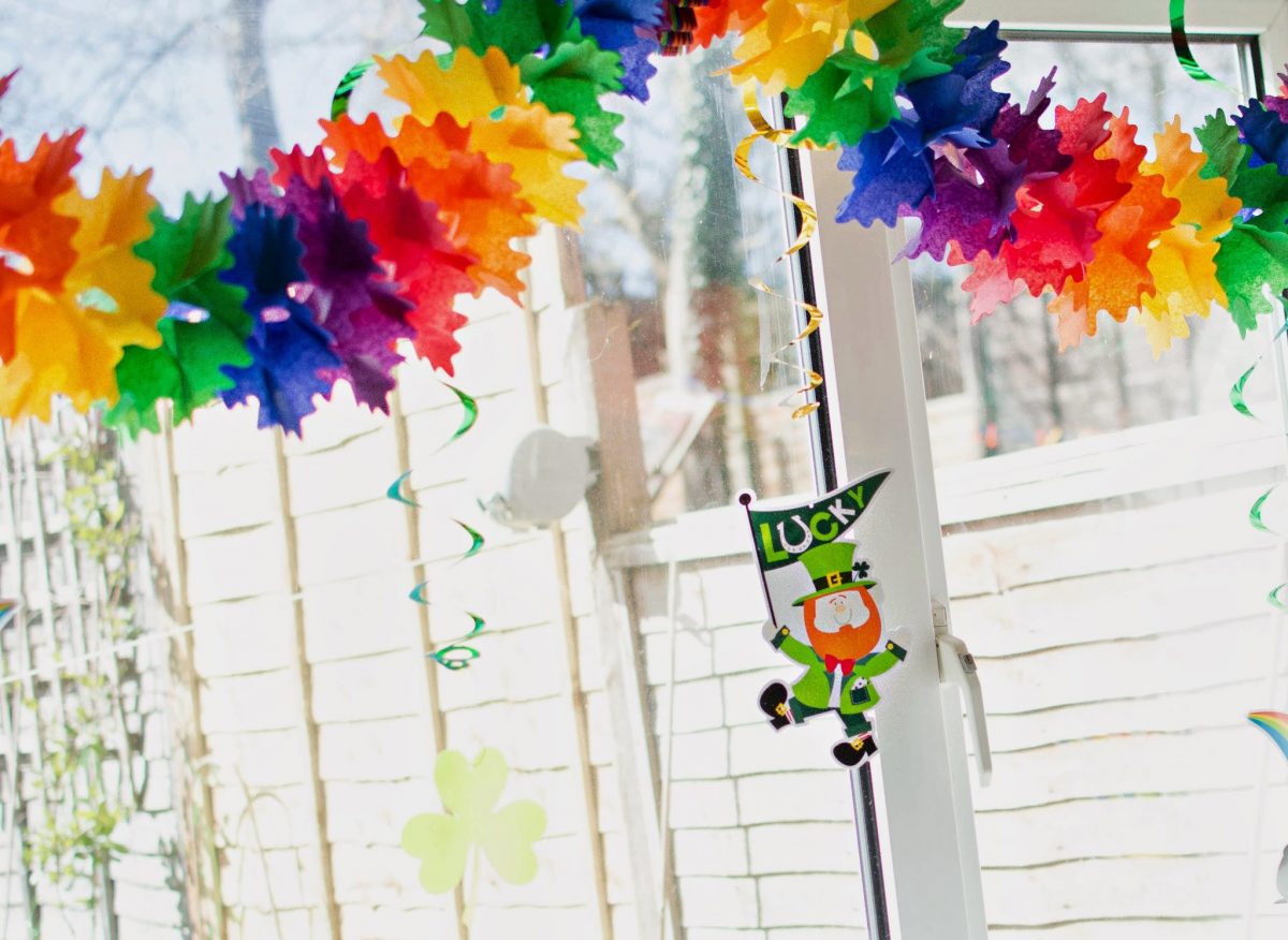 On Saturday morning, on return from Jiu Jitsu with Dadda, the party was discovered. Rainbows and shamrocks everywhere.