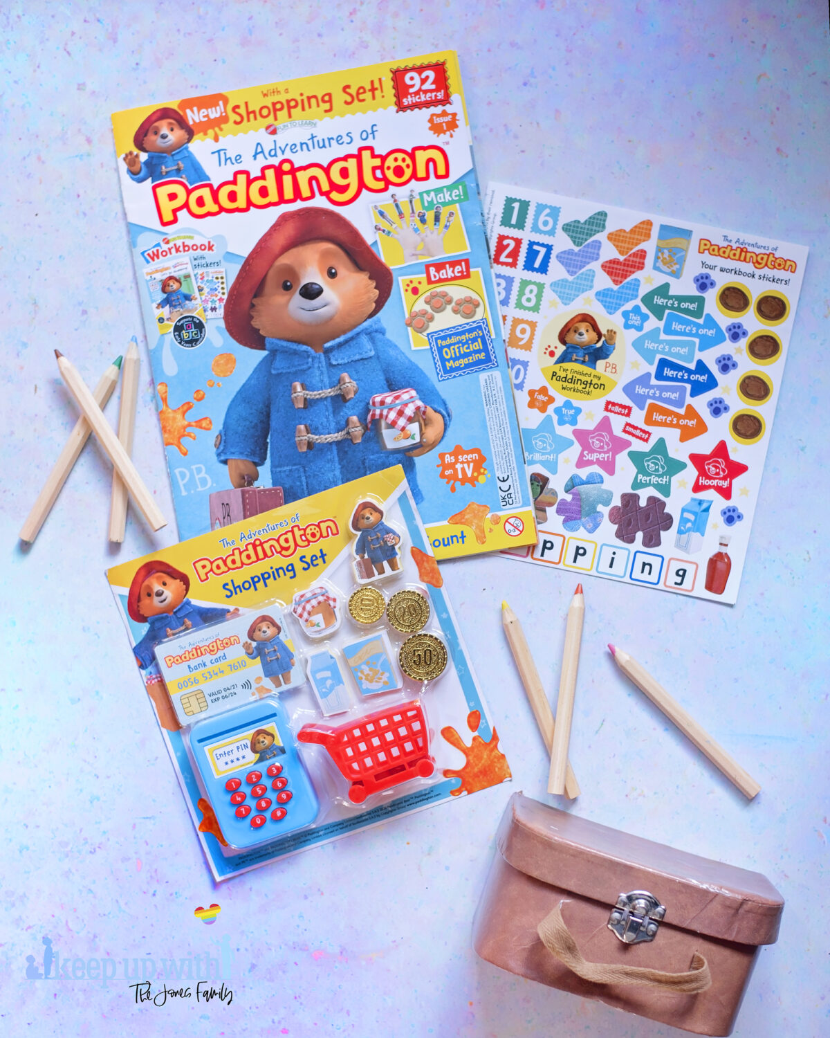 So the magazine is just lovely. It’s bright, gender-neutral and what’s even better is that each isue will have a Paddington Bear branded gift! Issue one comes complete with a shopping set including a little bank card, pin machine, trolley, mini stand up Paddington and coins, and some milk, cereal and marmalade pretend pieces. Whenever the boys choose a comic or magazine at the newsagents, you can be sure they evaluate what’s “free” on the front first. Haha. Hero gave this little set a thumbs up and asked for marmalade toast whilst he was playing.